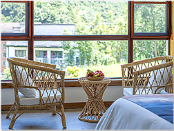 民宿設(shè)施齊全,服務(wù)功能完善,室內(nèi)裝飾到位,客房整潔寬敞,床上用品舒適柔軟,躺在床上可享受山村清晨第一縷陽(yáng)光的沐?。黄鸫餐拼氨M情的呼吸清甜的空氣,眺望遠(yuǎn)出或隱或現(xiàn)的云霧纏繞在山巒之中,好一幅山村如畫的美景。