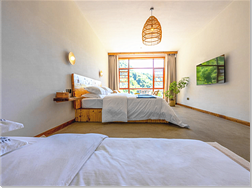 民宿配套硬件到位,客房配有獨(dú)立衛(wèi)生間、電視、空調(diào)、無(wú)線WiFi,中央熱水器,24小時(shí)供應(yīng)熱水,床單被套一客一換。一次可接待40余人住宿和用餐,集休閑、度假、觀景、娛樂(lè)為一體的綜合型民宿酒店。